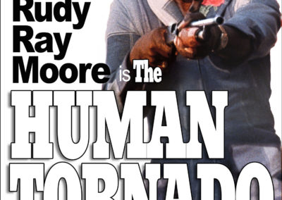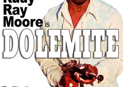 Filmmaker Quentin Tarantino, hip-hop icon Snoop Dogg and Eddie Murphy consider him a major influence; he’s been sampled by N.W.A., Dr. Dre, the Beastie Boys, Too Short, Busta Rhymes and Bone Thugs-n-Harmony; he appeared in a video by alt-rock band Cobra Verde and in a video game with Insane Clown Posse; he receives tens of thousands of hits on YouTube.com and on music download sites; his live performances, which attracted sell-out crowds made up primarily of 18 – 34-year-old Caucasians, continued up until his death; at a recent event, several Goth girls asked him to autograph their breasts. His creative vision and hilarious persona, tested over decades, remains timeless and accessible to anyone with a wild sense of humor, despite their race. What kind of man has this kind of power over so many? It can only be the Godfather of Rap…the first Black Action Hero…the one, the only RUDY RAY MOORE, a.k.a. DOLEMITE.